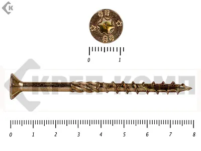 Саморезы Конструкционные, потай Torx, желтый цинк 6.0х 80 мм (20 шт)